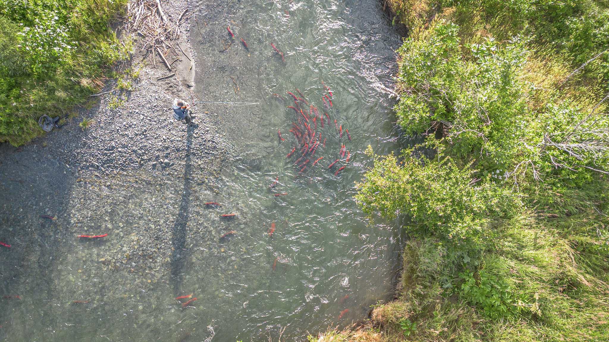 This walk-in wade trip takes you into a nearby crystal clear stream. Quartz Creek sees a healthy population of sockeye and king salmon return every year to spawn. Just the sight of these beautiful bright red salmon fulfilling their life cycle is unforgettable.