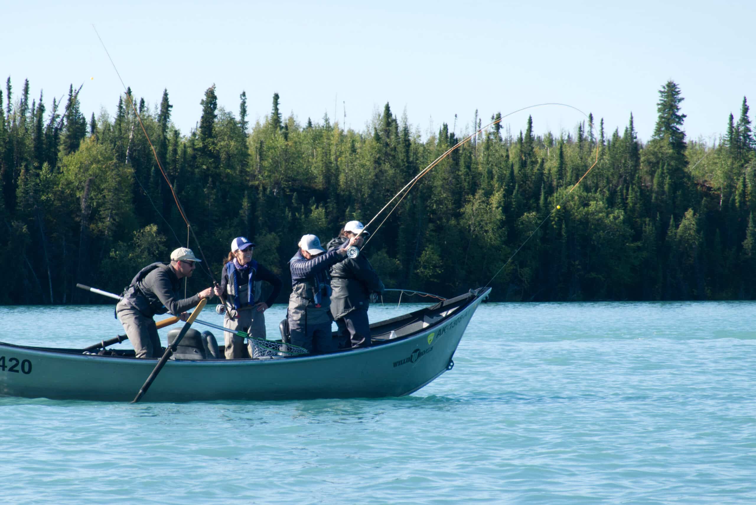 This is a unique opportunity to fish the area undisturbed by boat engines, and it only happens once a year. The guides return to their roots on the oars, patiently working the river from drift boats. Starting June 15, we can run our Willie Classic and Predator power boats in this area again. During these early summer dates, you can target rainbow trout by swinging streamers or drifting washed-out micro-flesh flies to mimic the remains of the previous year’s salmon runs, which support trout through the winter.