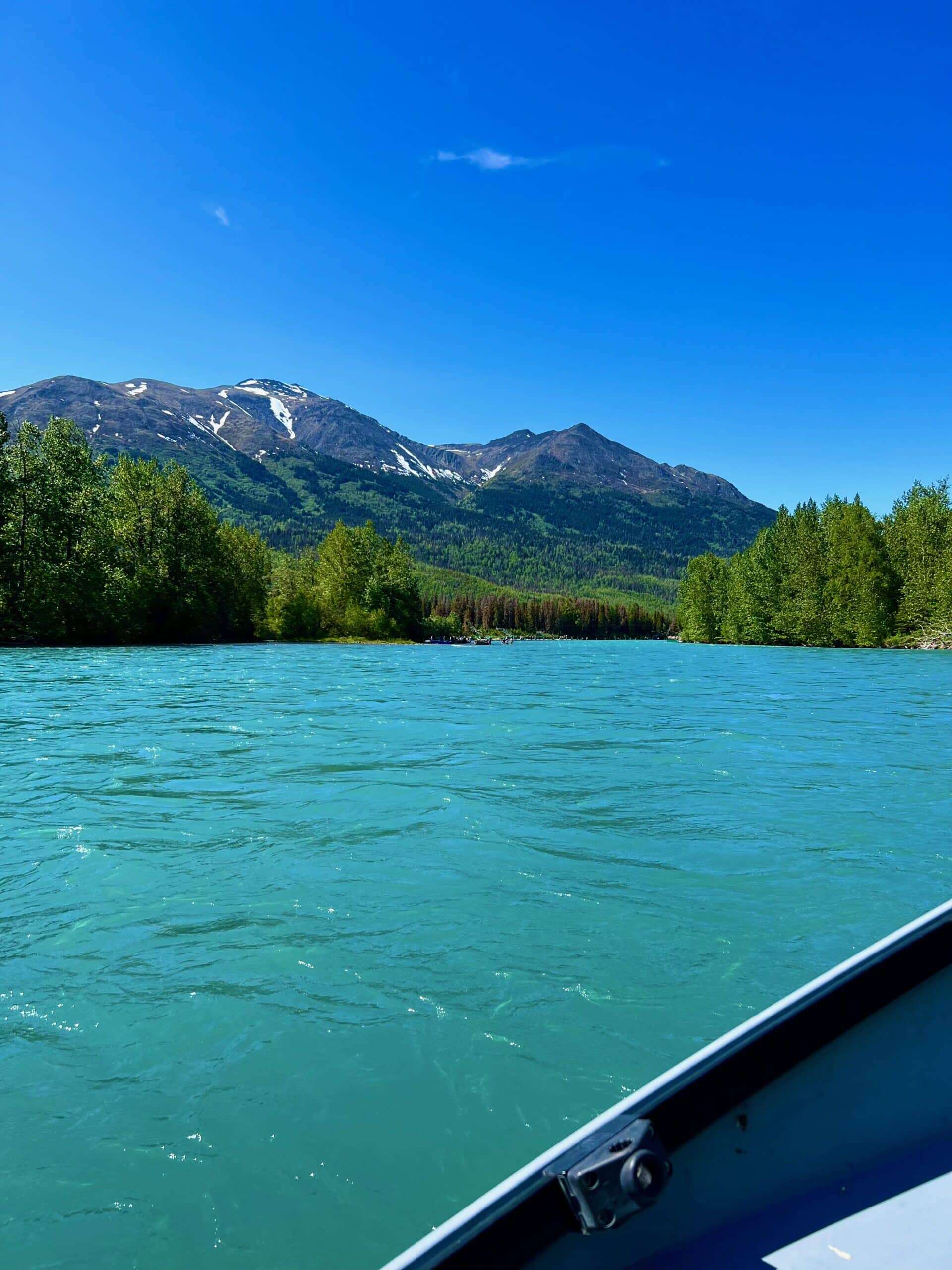 The Upper-Upper Kenai offers a picturesque, easy-going drift fishing trip. It’s the quintessential Kenai River fishing experience for anglers of any experience level. You’ll enjoy stunning turquoise waters, consistent rainbow trout, and dolly varden fishing all summer, and salmon available at certain times.